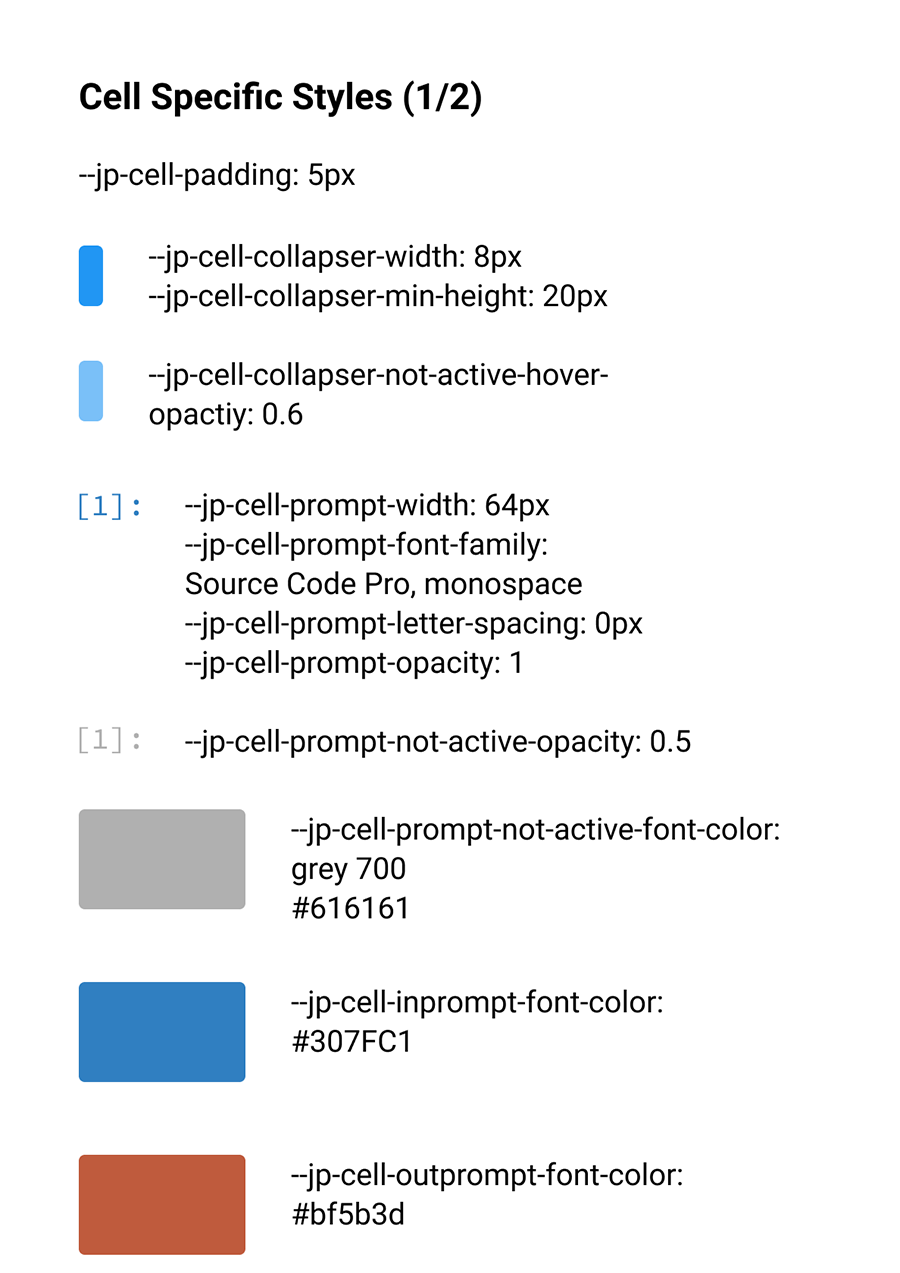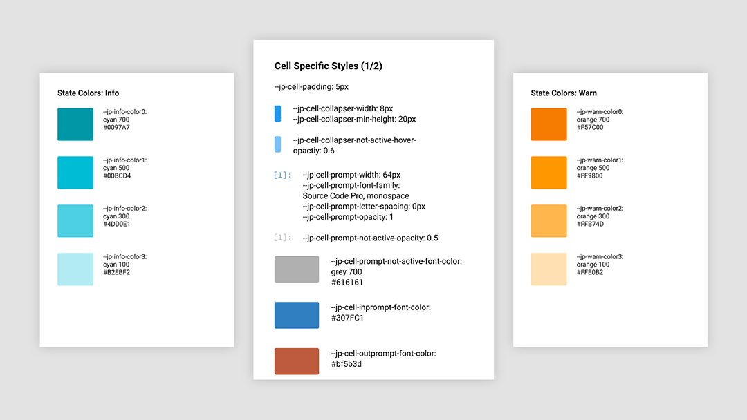Instead of continuing this workflow, we wanted to create a living link between JupyterLab's existing (and obscured) CSS and design tools while providing language that allows designers and developers to more easily communicate.