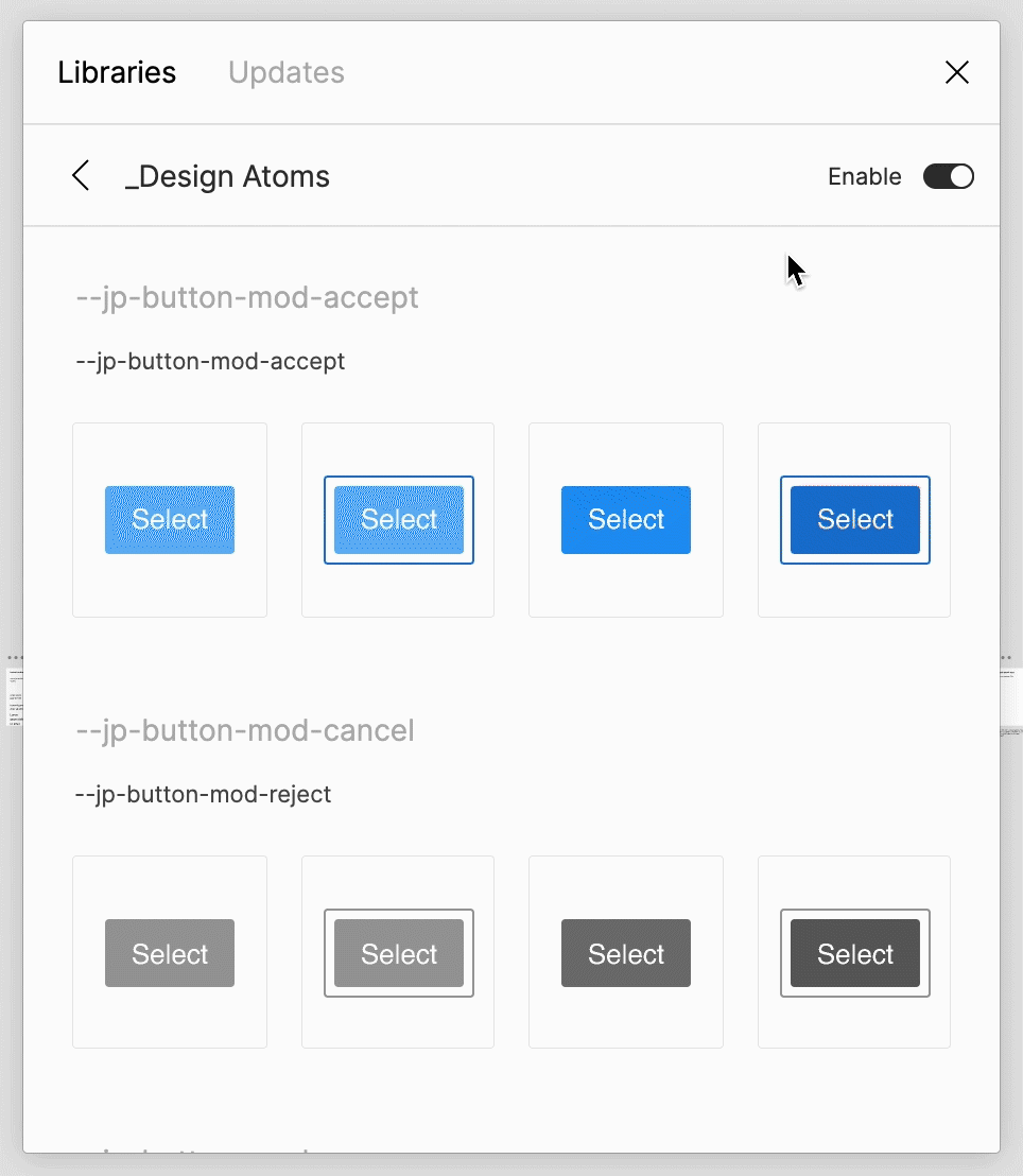This living, interactive design system is based on the organizing principles of Brad Frost's Atomic Design and built out by myself and Javier Garcia to accurately reflect JupyterLab’s CSS. It now takes form as static documentation and nested Figma team libraries used by JupyterLab designers today.